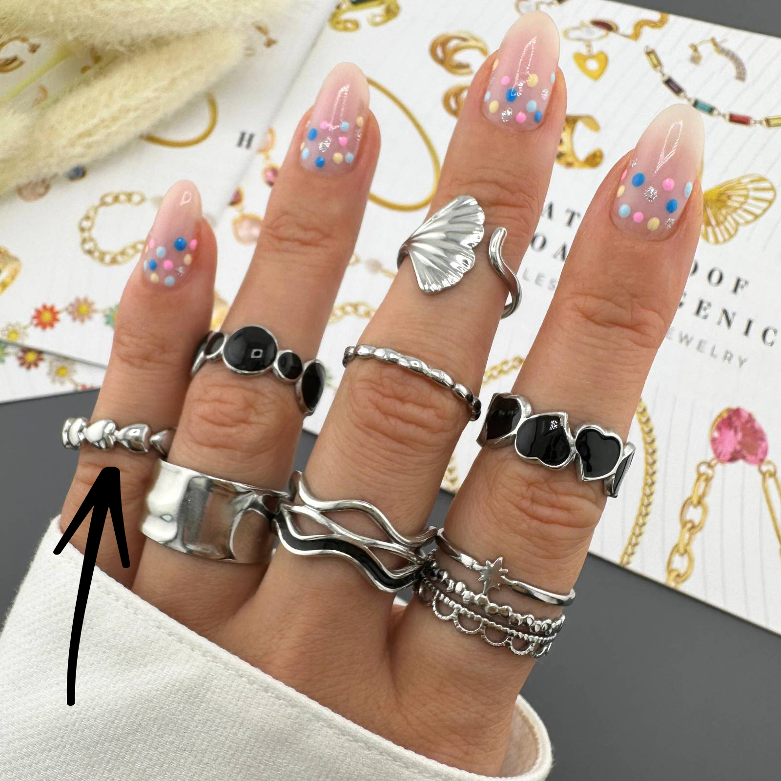 Prisen kun er for den ring, der er nævnt i beskrivelsen og vist på billederne med pile.