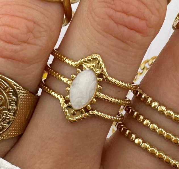 Navette-ringen er fremstillet af allergivenligt rustfrit smykkestål (316L), som anses for at være et allergimæssigt "renere" materiale end sterling sølv og giver ekstra beskyttelse for dig med sensitiv hud eller allergitendenser.